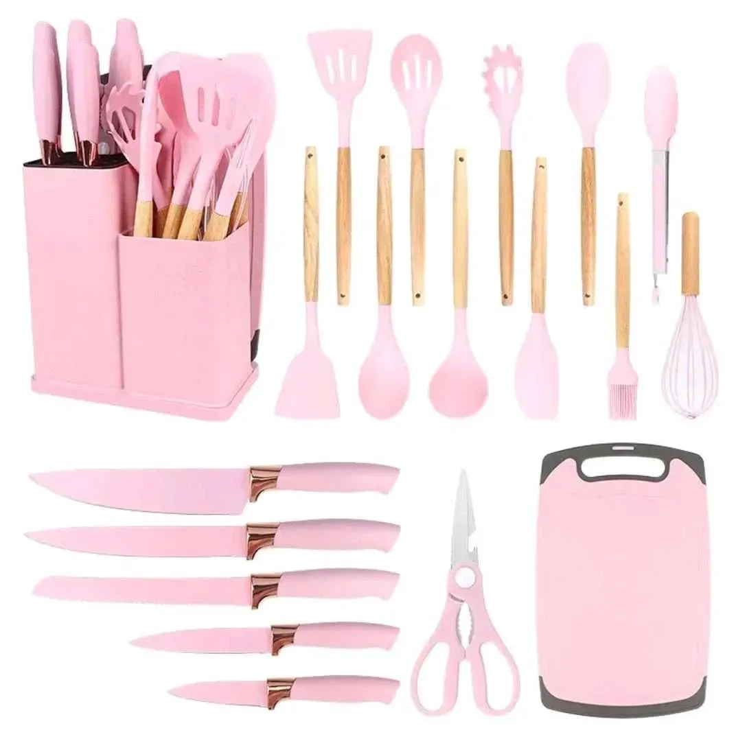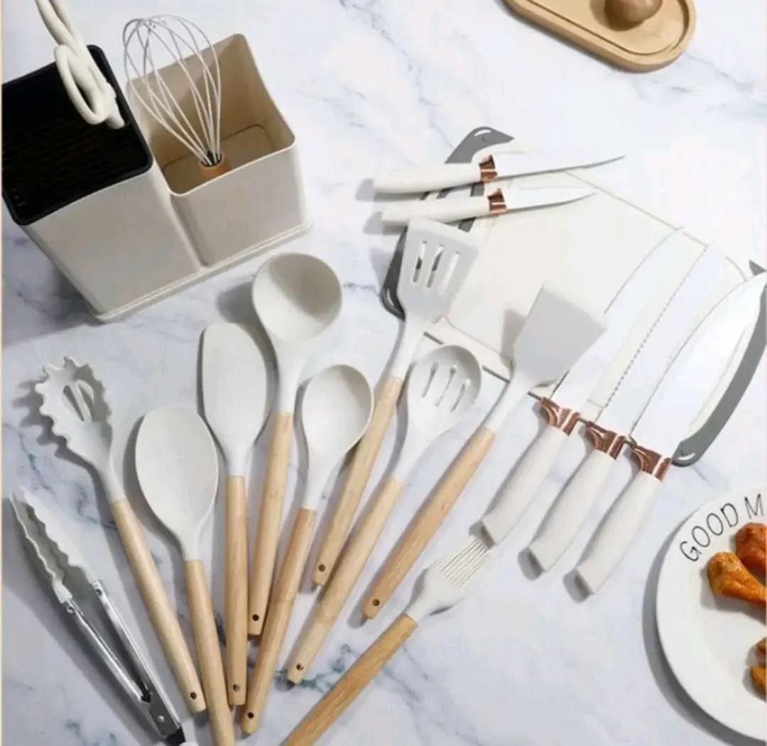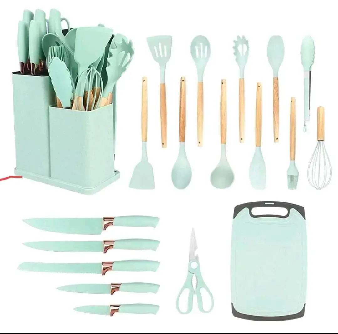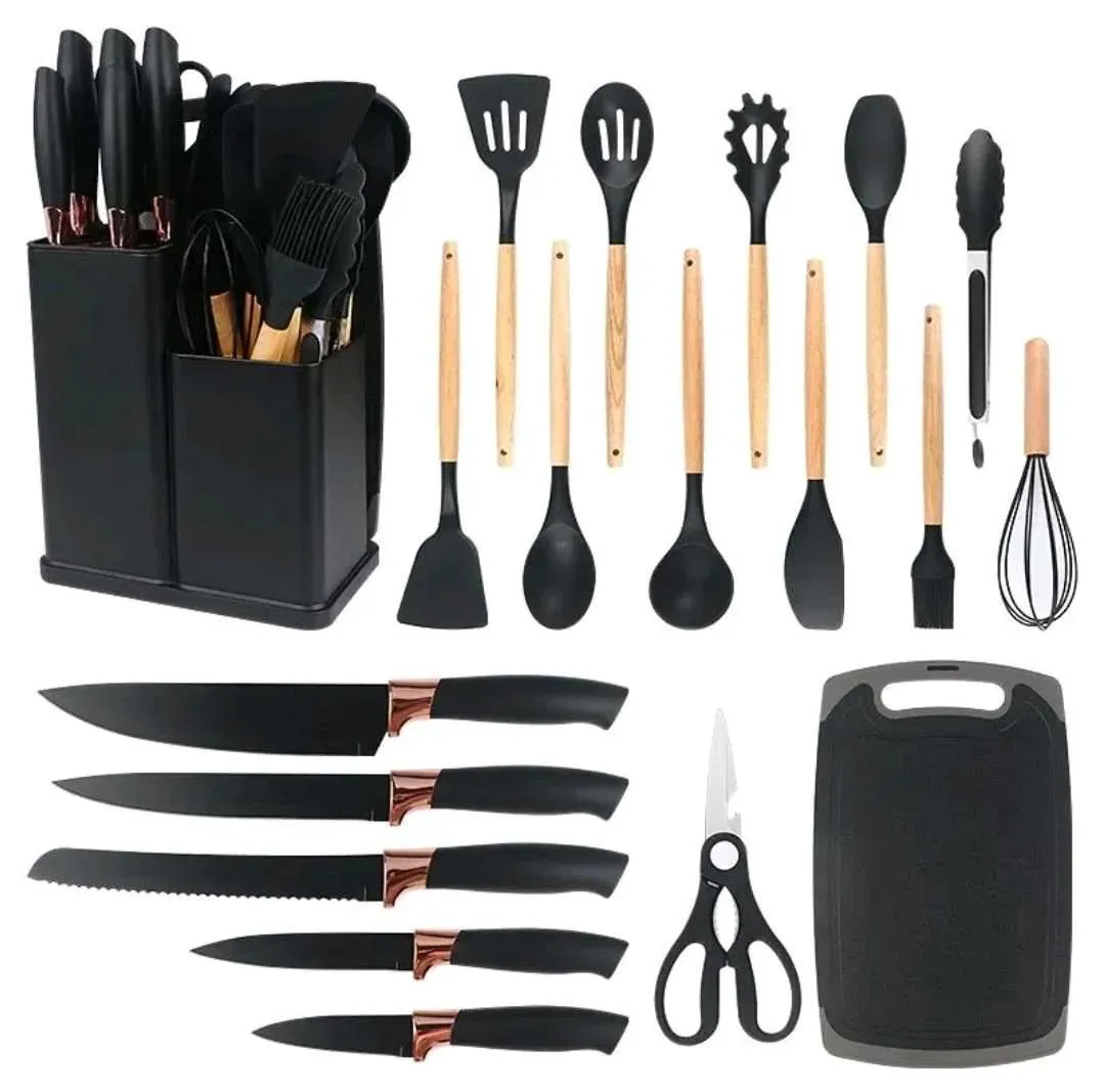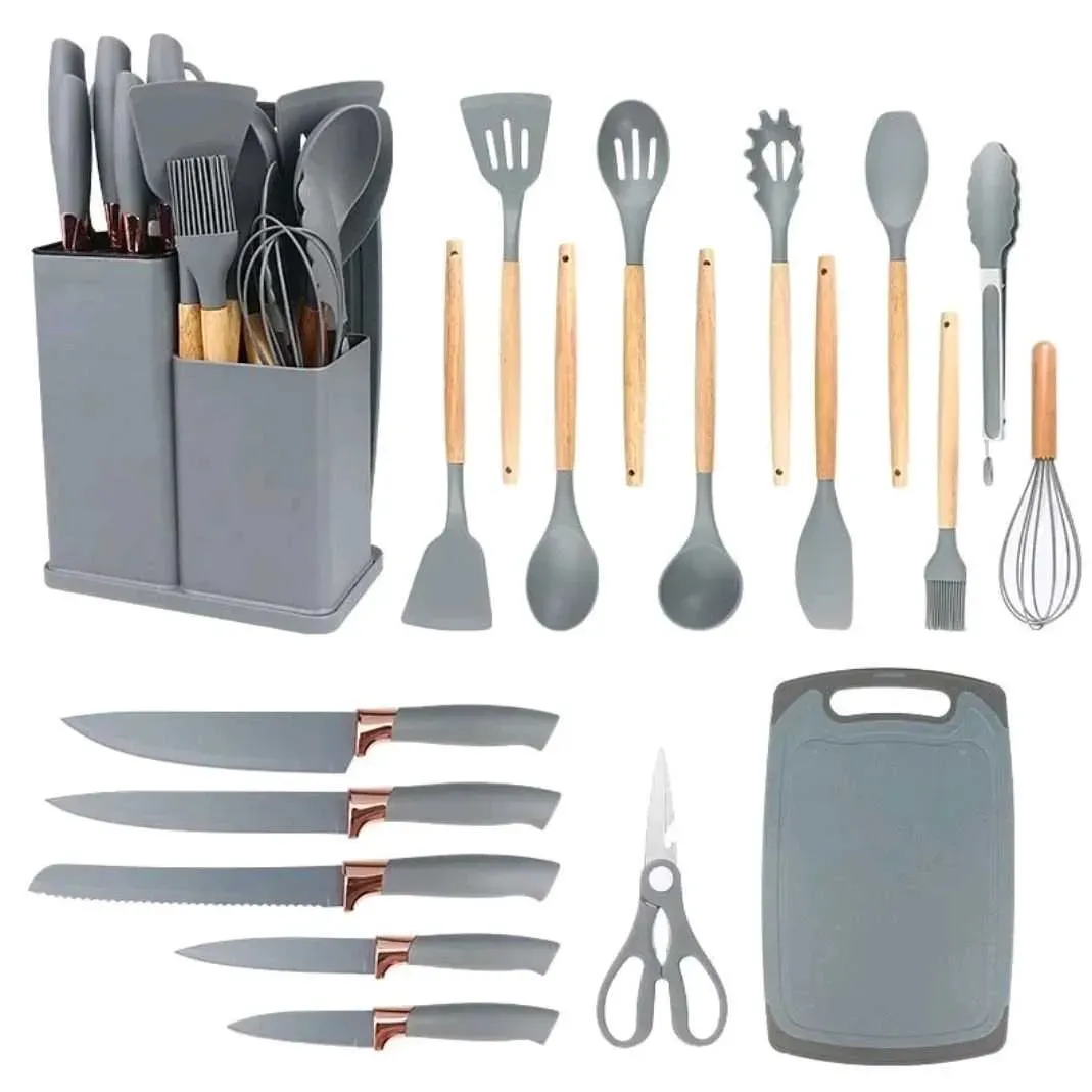 Este Juego de Utensilios de Cocina es imprescindible para tu cocina. Con 19 piezas de alta calidad, podrás cocinar con facilidad y estilo. Diseñado para durar y facilitar la preparación de tus platos favoritos. ¡Haz de la cocina una experiencia placentera con este completo set!
